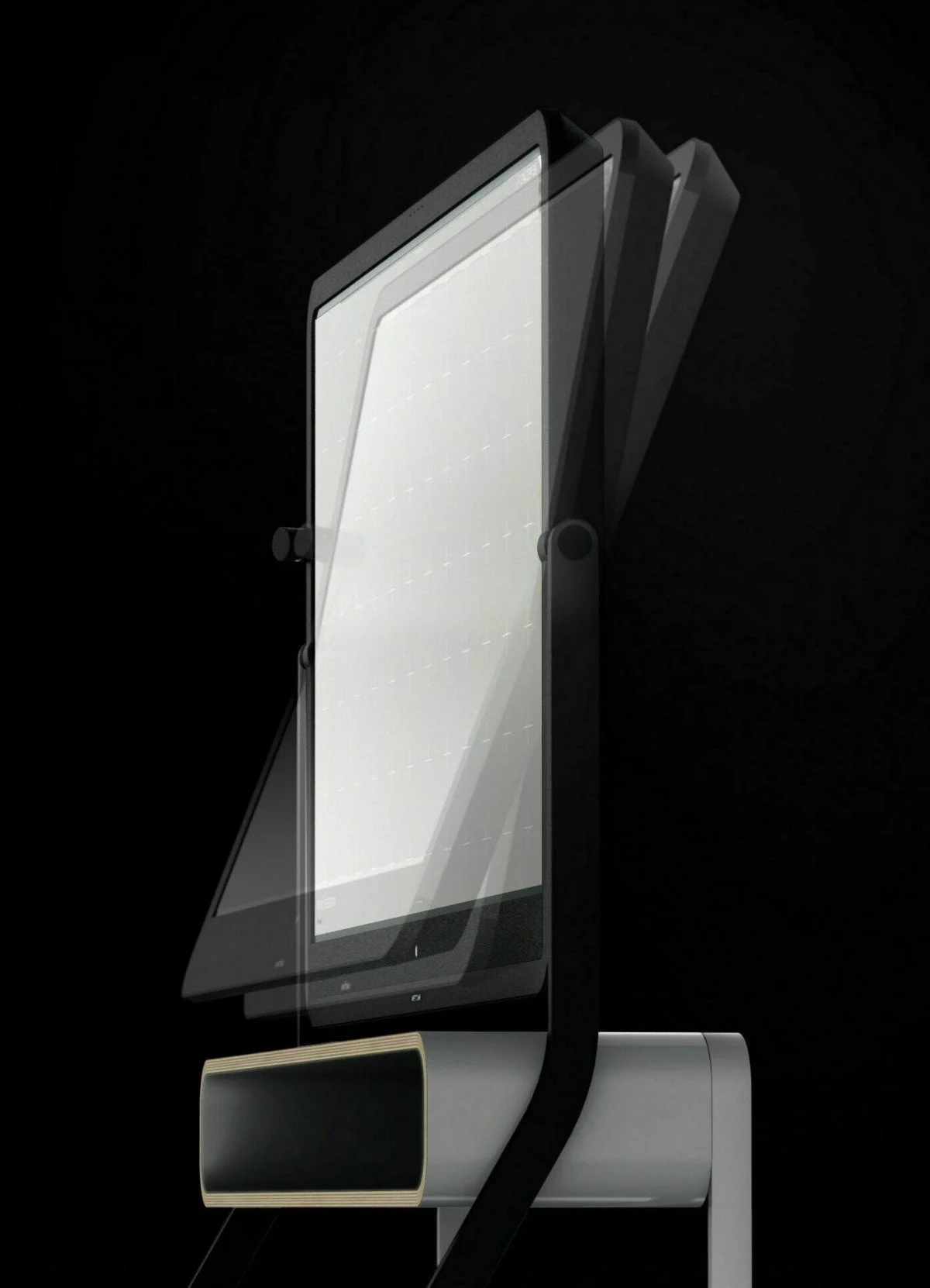 Seine Rollen bringen das interaktive Display dort hin, wo die Gruppe es braucht. Unüblich für seine Spezies: Man stolpert bei der Arbeit nicht darüber.
