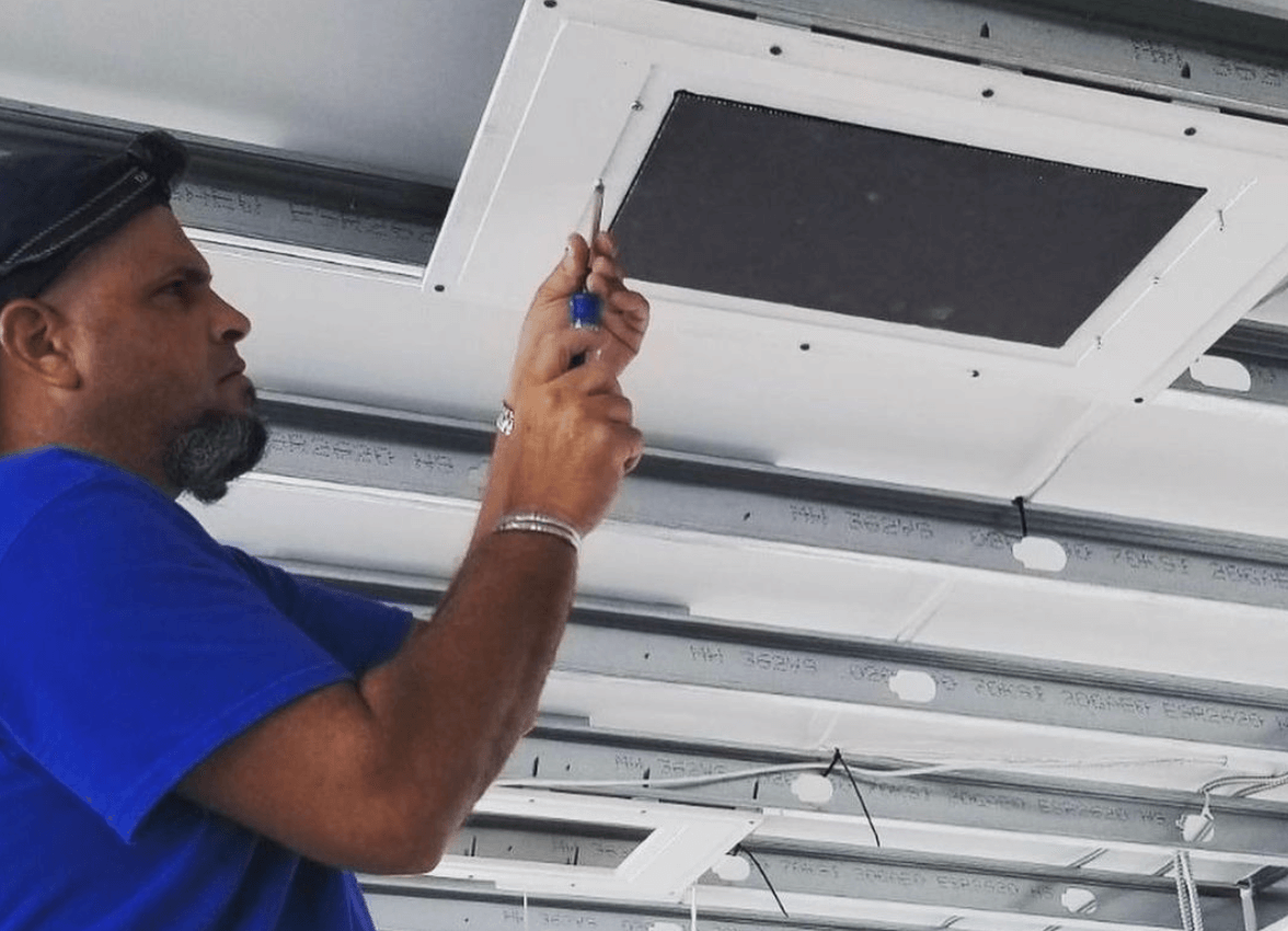 Ships with a 5" × 5" fine grill that sits fully flush with plaster or drywall - the only visible element is a discreet grille that blends seamlessly into the finished surface. -